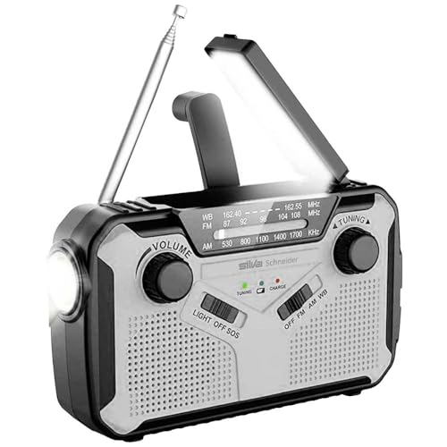 Silva Schneider SOS 112 nödradio, USB-mobiltelefonladdningsfunktion, siren, ficklampa, lä, svart-grå