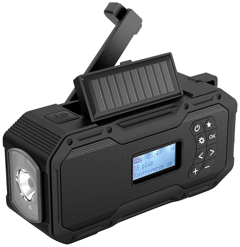 Nödradio batteri/handvev/solceller/USB-C (AM/FM/DAB/Ficklampa) - Extra stort 5000mAh batteri