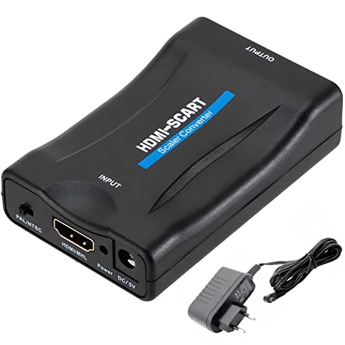 IHaospace HDMI till Scart Converter - Allt-i-Ett Adapter för Video och Audio, PAL/NTSC 1080P HD för HDTV STB VHS DVD Blu-ray - Plug and Play