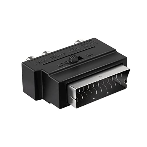 ekon Scart RCA-adapter, S-VHS-uttag, IN/OUT-switchknapp, för TV, Smart TV, DVD, Blue-Ray, VHS, Decoder, digital markbunden
