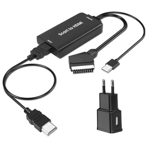AMANKA Scart till HDMI-kabelomvandlare, adapter och scart kabel Full HD 1080P videoljudomvandlare för HDTV STB VHS Xbox PS3 Sky DVD Blu-ray etc