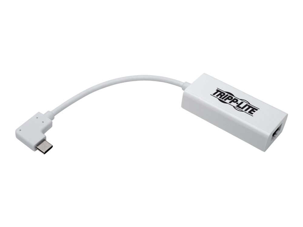 Eaton Tripp Lite Series Usb C To Gigabit Adapter Converter Usb 3.1 Gen 1 Right-Angle White 6In Usb Type C To Ethernet Network Adapter - 10/100/1000 Mbps, Thunderbolt 3 Compatible, White - Nätverksadapter - Usb-C 3.1 Gen 1 - Gigabit Ethernet - Vit