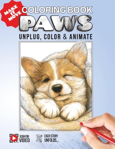 PAWS: Unplug, Color and Animate: Interactive Puppy Coloring Pages for Kids and Adults: 30+ Cute Dogs to Color, Animate via QR Codes, and Enjoy Stress-Free Creativity