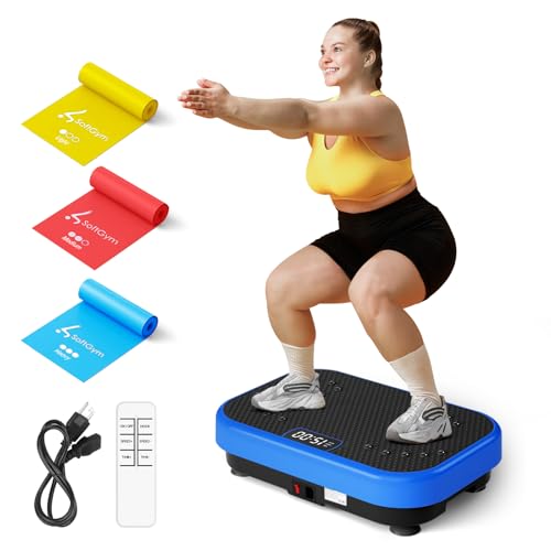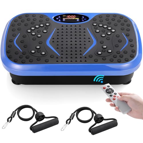 TLGREEN Vibrationsplatta 99 nivåer 5 träningsprogram, kompakt design, tyst motor, träningsband, halkfri, fitnessvibrationsbräda för hemmet, fettförbränning och muskelbyggande, blå