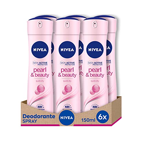 NIVEA Pearl & Beauty Deodorant Spray 6 x 150 ml, dam deodorant med pärlextrakt för strålande och mjuk hud, deodorant antiperspirant för 48h