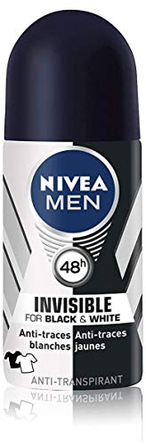 NIVEA MEN DEodorant osynlig kula för svart och vit kraft (50 ml), deodorant för män mot vita och gula ränder, antiperspirant armhåla skydd 48 h, plast