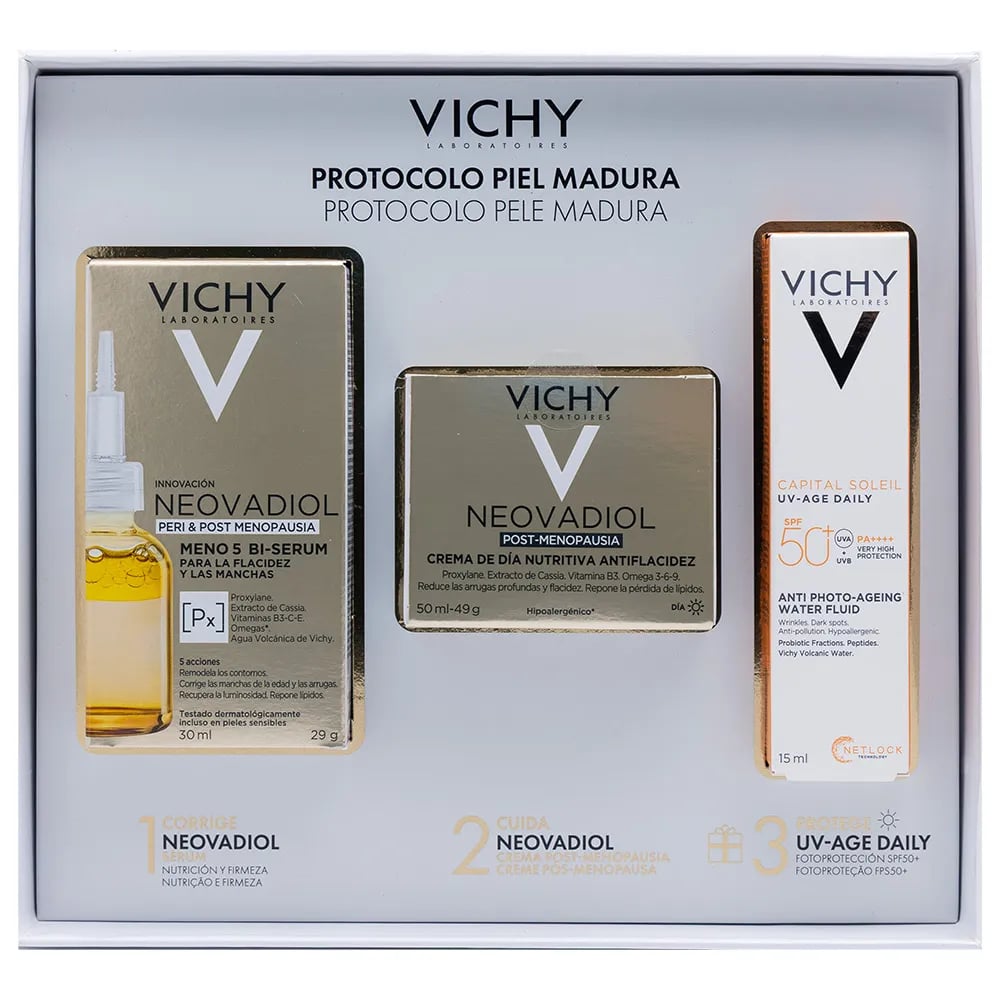 Utforska vårt sortiment av Vichy Neovadiol produkter som inkluderar ansiktskräm, serum och ögonvård. Produkterna är speciellt framtagna för att motverka åldrande och ge näring till huden. Upptäck Vichy Neovadiol Redensifying Plumping Day Cream, Vichy Neovadiol Replenishing Anti-Sagginess Day Cream, Vichy Neovadiol Meno 5 BI Serum, Vichy Neovadiol Rose Platinium Eyes och Vichy Neovadiol Rose Platinium Night Cream. Utforska produkterna idag för att hitta det bästa priset!