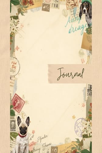 Vintage Dog Lover Junk Journal Pages - 6x9 Whimsical Puppy Aesthetic Scrapbooking Paper - 100 Decorative Writing Sheets with Retro Dogs, Antique Ephemera, Stamps and Victorian Style Stationery