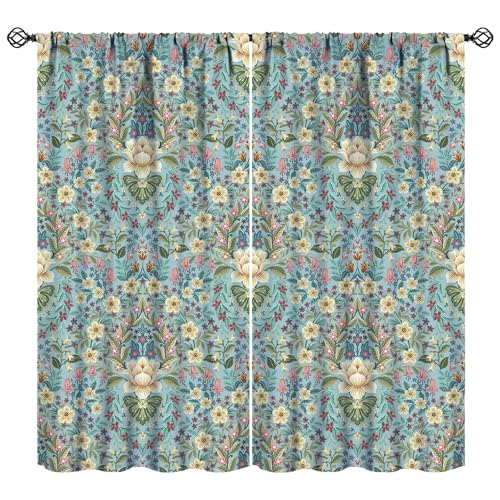 JESTRONRY Retro Floral Blackout Curtains,William Morris's Vintage Art Victorian Style Room Darkening Door Window Rod Pocket Curtain for Living Room Bedroom Kitchen Bathroom,2 Panel Set W42xL45in