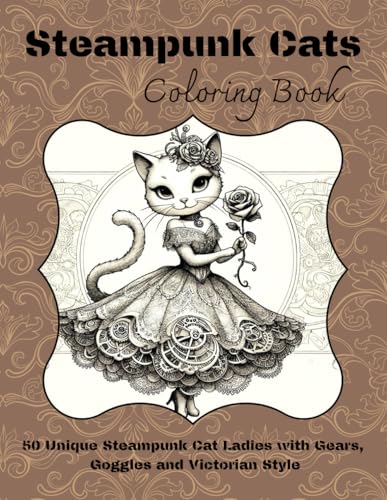 Steampunk Cats Coloring Book: 50 Unique Steampunk Cat Ladies with Gears, Goggles and Victorian Style