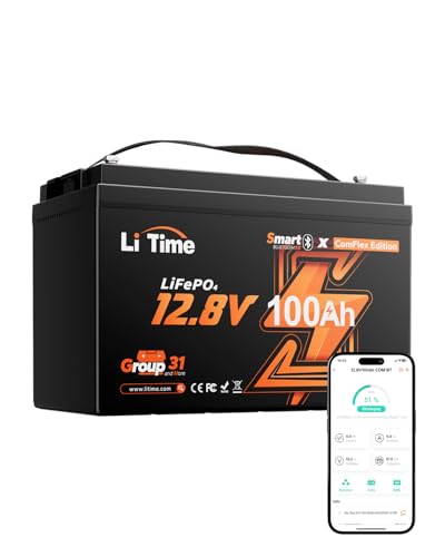 LiTime LiFePO4 Litiumbatteri 12V 100Ah, Deep Cycle Ackumulator med Bluetooth, Display och IP65, 4000-15000 Cykler, Kompatibel med Victron-System, för Husbilar, Båtar och Bilduppbyggnad, Camping