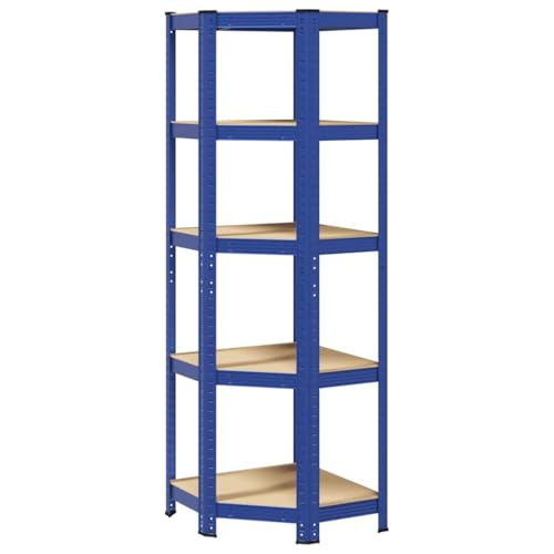 vidaXL Hörnhylla blå stål och konstruerat trä 5 hyllplan, garage hyllor, industriell hylla, garage hyllenhet, hyllenhet, garageinredning