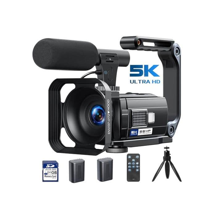 Videokamera 5K 56 MP videokamera vlogging kamera för YouTube, WiFi Night Vision 3" 270° vridbart stativ Videovloggningskamera med 64 GB kort, blixtkontroll, mikrofon, 2 batterier, stativ