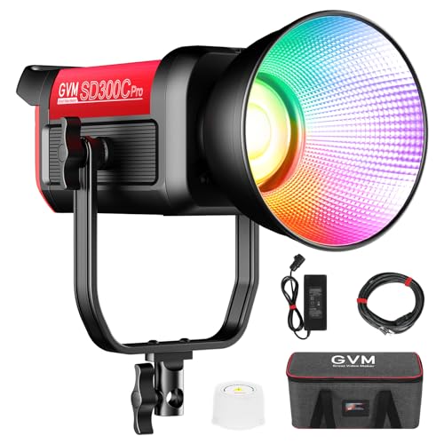 GVM 300C RGB videoljus, 300W Bowens LED Studioljus 2000K-10000K LED fotografering Kontinuerligt ljus med DMX, 48200Lux/m COB videobelysning för att filma Youtube, 16 effekter RGB videoljus