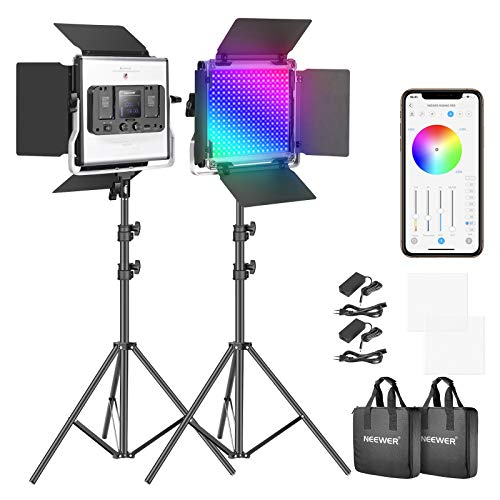 NEEWER 2 x 660 PRO RGB LED-videolampa panel med stativ set app kontroll 360° fullfärg videoljus 50 W dimbar 3 200~5 600 K CRI97+ studio kontinuerligt ljus spel/streaming/zoom/YTB/Webex/fotografering