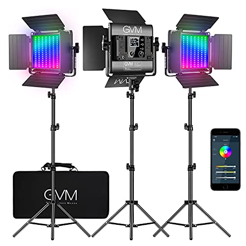 GVM 480 LED videoljus set med stativ, appstyrning studio LED belysning, CRI97 2300K-6800K LED varaktighetsljus fotografering för YouTube studio fotografi kamera studio led videolampa set