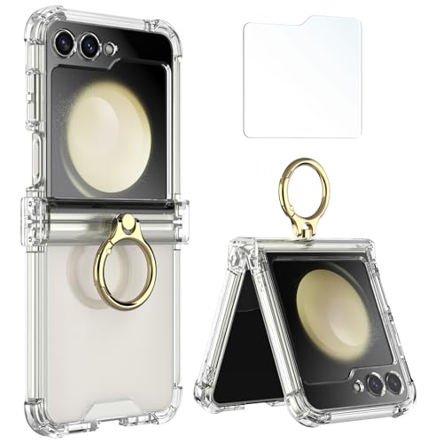 Simpeak Fodral kompatibelt med Samsung Galaxy Z Flip 5 5G, smalt fodral, reptåligt med skärmskyddsfilm, TPU stötsäkert skyddande krockkudde, vikbart fodral med ring videostativ, fodral klar