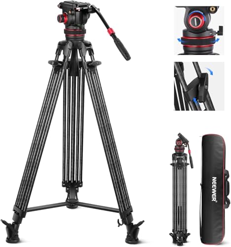 NEEWER 78" Videostativ, Kolfiber, Quick Release Kamerastativ, Justerbar Dämpande Flytande Huvud, Dubbelläge QR-platta, Belastning 22 kg, LL35