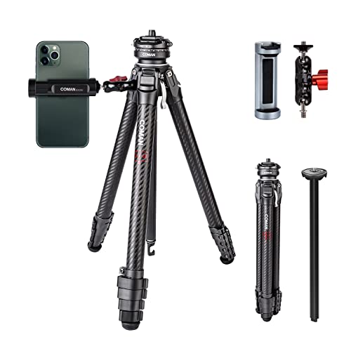 COMAN Zero F38 kolfiberkamerastativ med 360° panoramiskt bollhuvud och F38-videostativ för alla DSRL-kameror, lätt stativ med 15,3–156,7 cm höjd, centerkolumn, maximal belastning 18 kg