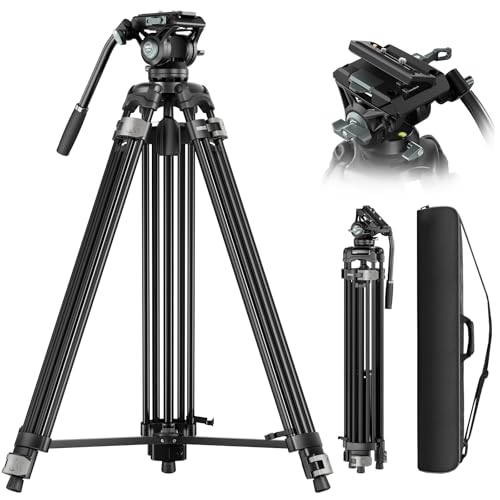 NEEWER 74 tum videostativ med justerbart dämpningsvätskehuvud, metall slitstark dubbelläge QR-platta kompatibel med DJI RS Gimbals Manfrotto, flexibel 360° panorering och +90°/-75° lutning,