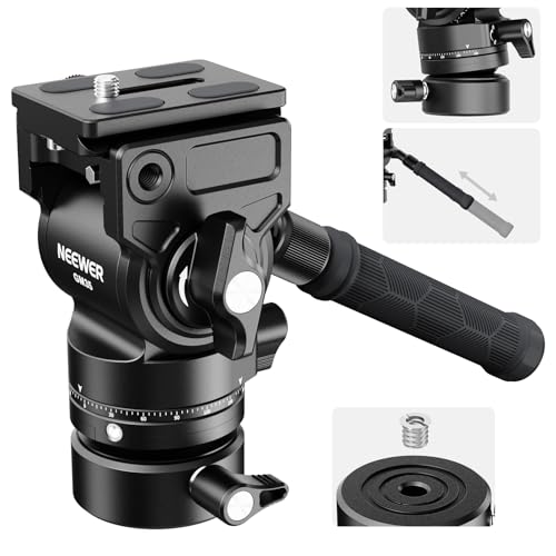 NEEWER Vätskehuvud för videostativ med +/-10° nivelleringsbas (⌀ 37 mm), metallstativhuvud, videohuvud med Arca-typ snabbväxlingsplatta, teleskophandtag för videokameror, DSLR, max belastning 4 kg,