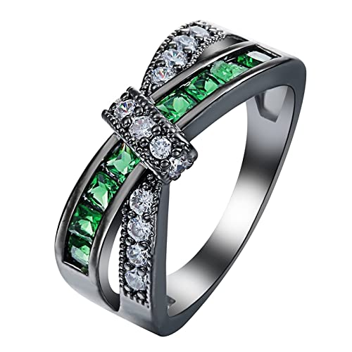 Aotiwe stora ringar för kvinnor, brud, vigselring, set, fluga, svart med grön, fyrkantig form, kubisk zirkonia, N 1/2, Silverpläterad, Kubisk zirkonia