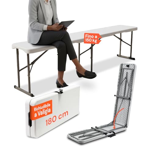 Avilia Vit/180 cm hopfällbar bänk i stål som tål upp till 150 kg för inomhus- och utomhusbruk, perfekt som trädgårdsbänk eller picknickbänk, vikbar och lätt att bära