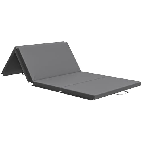 HOMCOM Vikbar gymnastikmatta, tjock gymnastikmatta, 180 x 80 x 5 cm, med handtag, golvmatta för yoga, mma, sport, fitness, pilates, konstbeläggning (grå)