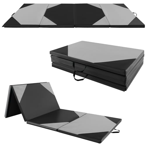COSTWAY 180 x 60 x 5 cm mjuk golvmatta vikbar, gymnastikmatta, bärbar, yogamatta, vattenavvisande, gymnastikmatta, halkfri, fällmatta, fitnessmatta (svart)