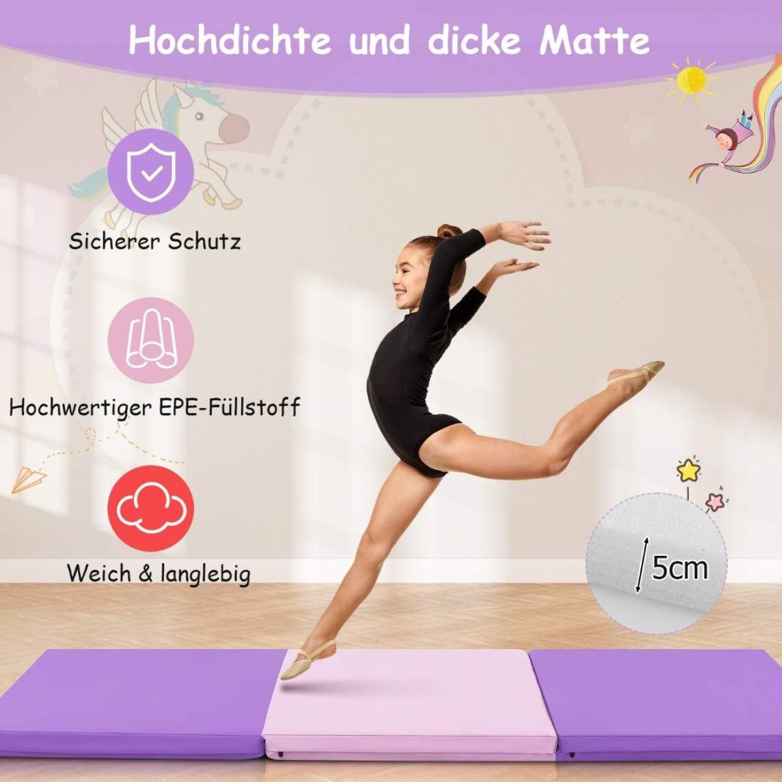 COSTWAY 180 x 60 x 5 cm mjuk golvmatta vikbar, gymnastikmatta, bärbar, yogamatta, vattenavvisande, gymnastikmatta, halkfri, fällmatta, fitnessmatta (lila)