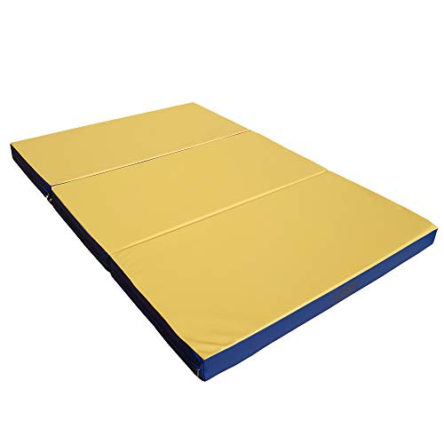 RoniKids Gymnastikmatta vikbar 150 x 100 x 8 cm (gul/blå) mjuk golvmatta fitnessmatta yogamatta skyddsmatta barnrum gästsäng yogamatta hopfällbar matta