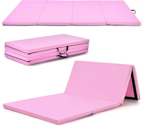GOPLUS Vikbar gymnastikmatta 240 cm x 116 cm x 5 cm, vikbar gymnastikmatta med bärhandtag, kardborreband, gymnastikmatta, hopfällbar matta för yoga, stretch, aerobics, core träning (rosa)