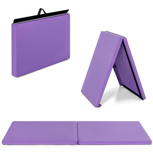 COSTWAY 180 x 60 x 5 cm, mjuk golvmatta, 2-fack vikbar gymnastikmatta, yogamatta med kardborreband och 2 bärhandtag, vikmatta, gymnastikmatta för gymnastik, yoga, fitness och träning (lila)