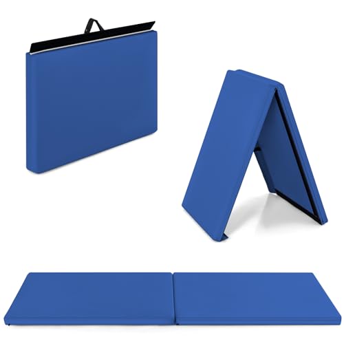 COSTWAY 180 x 60 x 5 cm, mjuk golvmatta, 2-fack vikbar gymnastikmatta, yogamatta med kardborreband och 2 bärhandtag, vikmatta, gymnastikmatta för gymnastik, yoga, fitness och träning (blå)