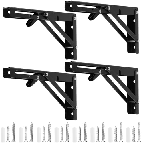CHUENKK 4 stycken fällbara konsoler, tung belastning 250 mm, fällbart gångjärn, tung konsol, svart vägghylla, vikbar, hyllvinkel för vägghyllor, fällbord, bokhylla, max lastkapacitet 50 kg