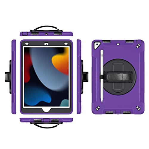 Fodral för iPad Air3 10.5 2019 med 360 graders roterbar handledsrem, tre-i-ett robust fodral med vikbar konsol och skärmskydd för pro 10.5 2017, lila