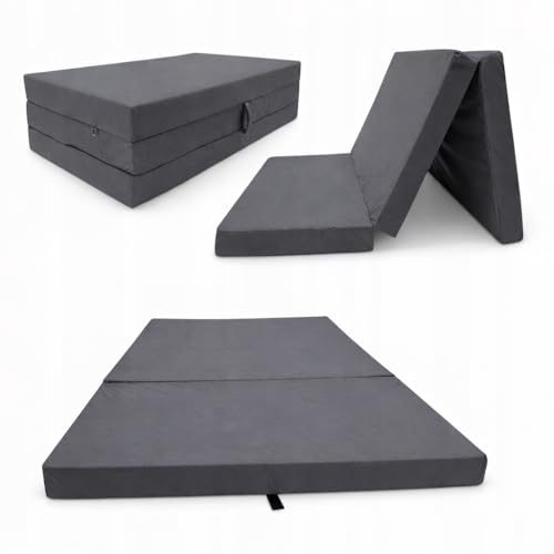 Pillows24 – Fällmadrass 195 x 75 x 15 cm med avtagbart överdrag och bärhandtag | Vikbar gästmadrass | Oeko-TEX | vikbar madrass/vikbar madrass för gäster, barn eller resor | grå spader