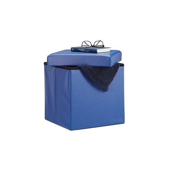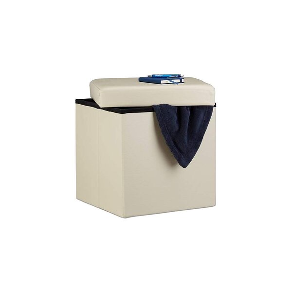 Relaxdays Sittpall med förvaringsutrymme, konstläder, vadderad, vikbar pall, vardagsrum, H x B x D: 49 x 48,5 x 27 cm, vit