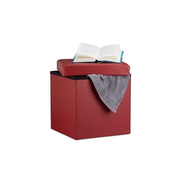 ECHTWERK Sittkuber, Storecube, stoppad pall med förvaringsutrymme, vikbar förvaringslåda, fotpall, vikbar, funktion som sidobord, avtagbart lock, konstläder, röd, ca 38 x 38 x 38 cm