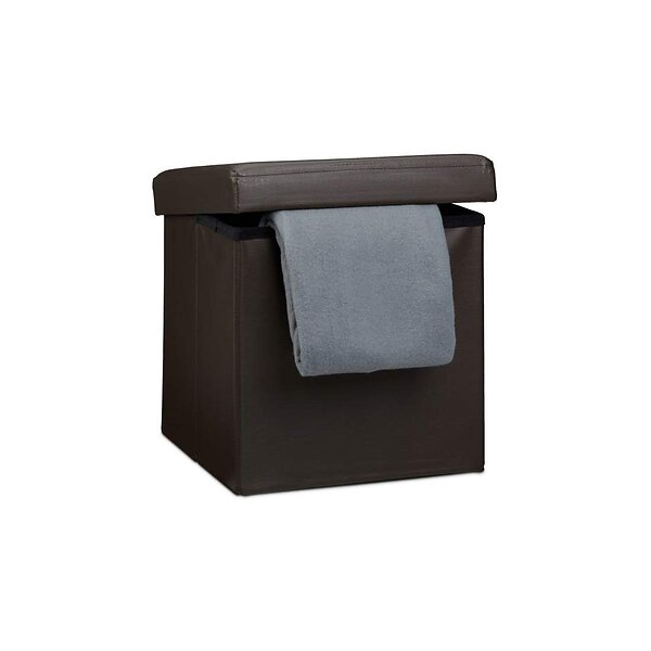 Relaxdays Sittpall med förvaringsutrymme, vikbar, vadderad, pall med träplankor design, HBT: 38 x 37,5 x 37,5 cm, brun