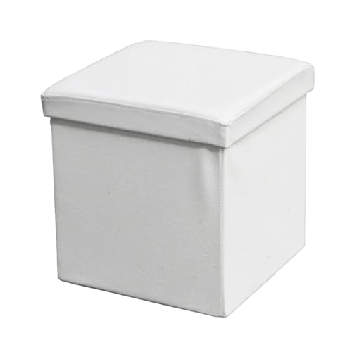 ECHTWERK Sittkuber, Storecube, stoppad pall med förvaringsutrymme, vikbar förvaringslåda, fotpall, vikbar, funktion som sidobord, avtagbart lock, konstläder, vit, ca 38 x 38 x 38 cm