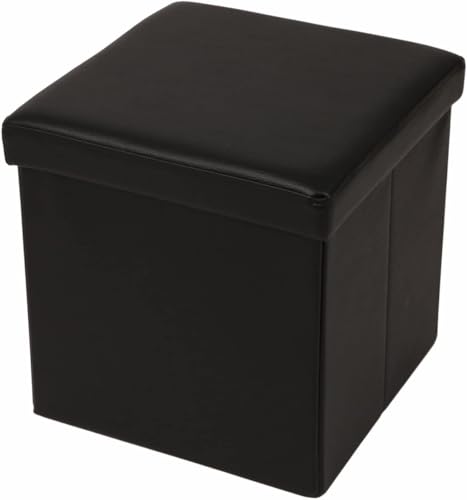 ECHTWERK Sittkuber, Storecube, stoppad pall med förvaringsutrymme, vikbar förvaringslåda, fotpall, vikbar, funktion som sidobord, avtagbart lock, konstläder, svart, ca 38 x 38 x 38 cm