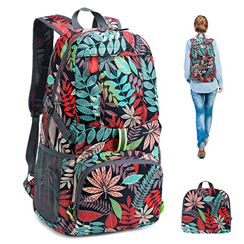 G4Free 20 l ultralätt vikbar ryggsäck packbar vattentålig dagväska för utomhuspromenader camping resor cykling semester unisex Blomma svart uppdatering 20 Long