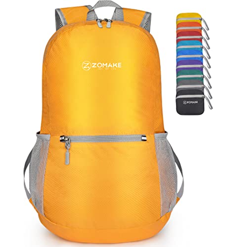 ZOMAKE Ultralätt Vikbar Ryggsäck 20L,Små Vattentät Vandring Packbar Ryggsäck För Kvinnor Män Utomhus Vandring Camping Bergsklättring Promenader Cykling(Gul)