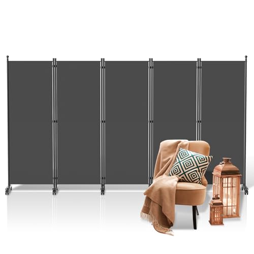 Hebitod rumsavdelare på hjul, vikbar i 5 delar, fristående skiljevägg, paravent, rumsseparator för vardagsrum, sovrum, omklädningsskydd, vägg, 284 x 181 cm | antracit