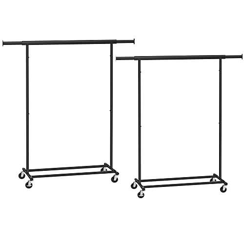 Songmics klädställ för tung last, set om 2, garderobsställ på hjul, kan belastas upp till 90 kg, med utdragbar klädstång, vikbar underdel, hylla för lådor, svart HSR013B02