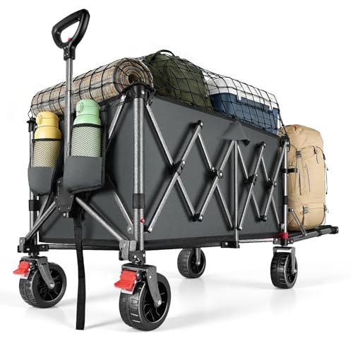 Festivalvagn på hjul, 125–240 L hopfällbar vagn, bärbar campingvagn, campingvagn, vikbar för strand, utomhus, trädgård, shopping, fiske, design med baköppning, dubbel bromsvagn, grå