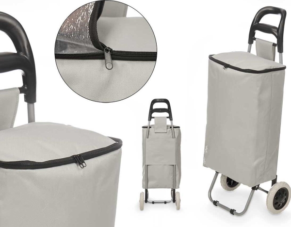 Aerebos 3-i-1 shoppingvagn | stor vagn 56 liter | shoppingvagn med kylfack | shoppingväska med hjul | vikbar shoppingväska | avtagbar väska | handvagn | grå
