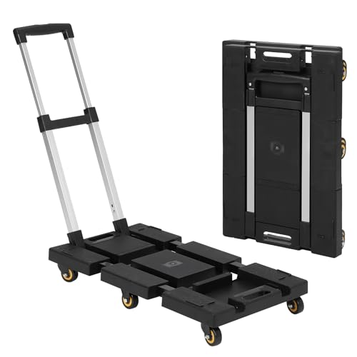 VEVOR Vikbar handvagn, lastkapacitet på 49,9 kg, vikbar bagagevagn med 2 hjul, 1 elastiskt rep, multifunktionell för bagageförvaring, kontor, flyttning, svart