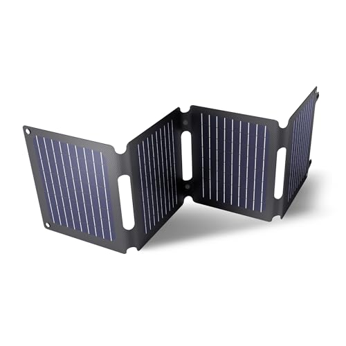 DOKIO Vikbar mobil solpanel 100 watt med monokristallina celler, integrerad 12 volt-laddningsregulator och 2 USB-port